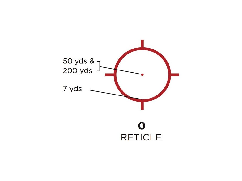 | Specifika modelu 518 - Červený záměrný obrazec 1 MOA tečka a 68 MOA kruh