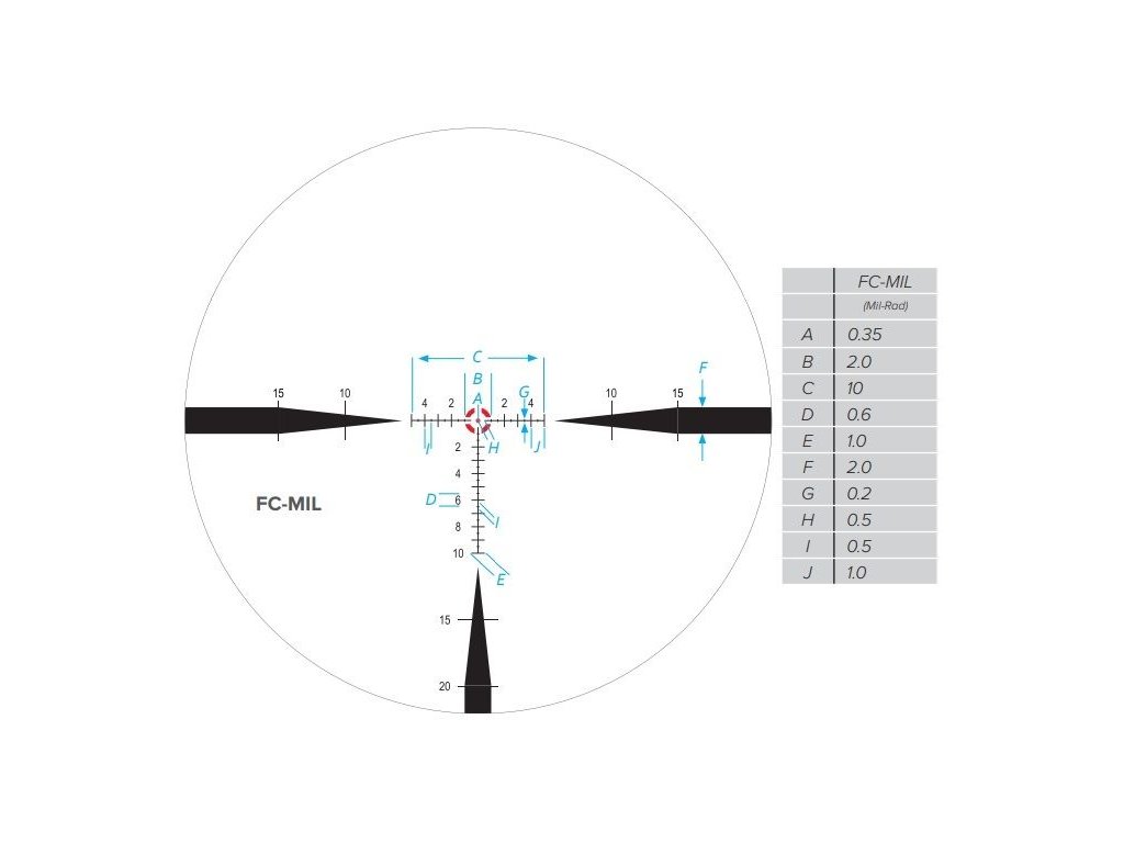- Záměrný kříž (FC-MOA nebo FC-MIL - podle modelu) byl vytvořen a optimalizován pro puškohledy s proměnným malým zvětšením