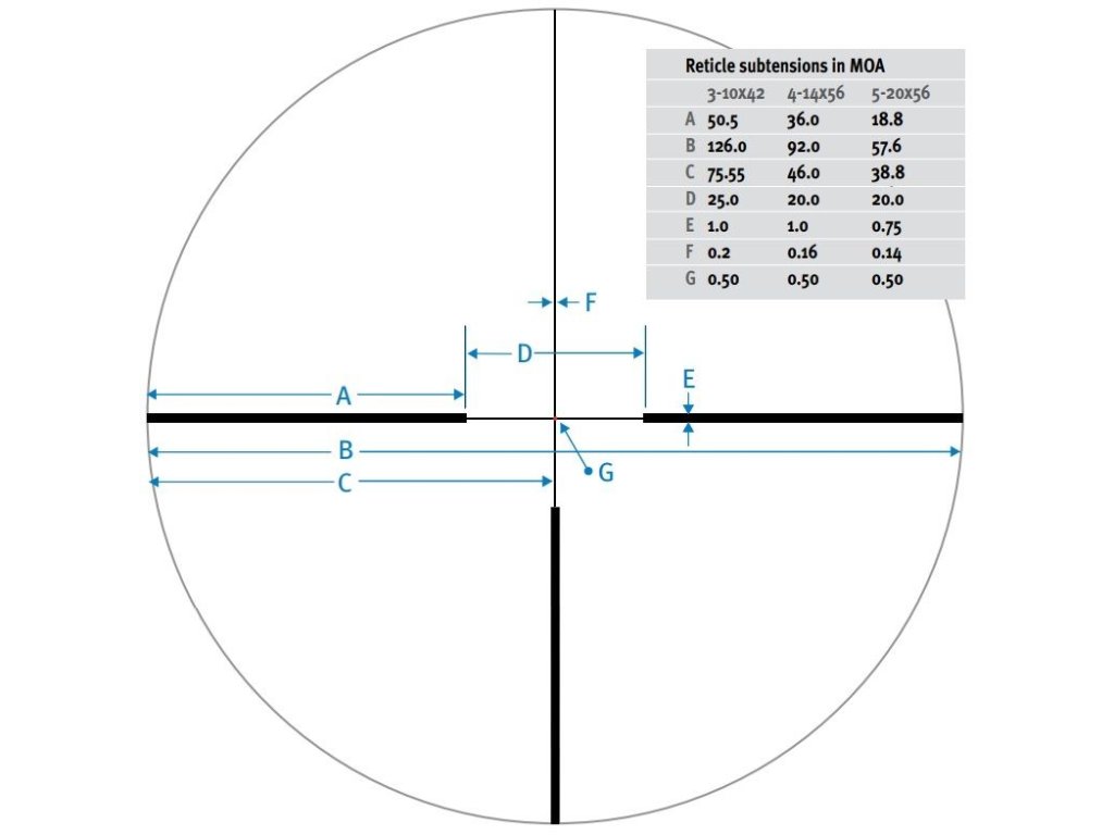 Technická data | Model | SHV 4-14x56 F2 4A | | Fokální rovina | Druhá - záměrný kříž se NEMĚNÍ | | Zvětšení | 4-14x | | Průměr objektivu | 56 mm | | Průměr tubusu | 30 mm | | Rozsah výškové korekce | 100 MOA | | Rozsah stranové korekce | 70 MOA | | Jeden klik | 0.25 MOA | | Zvětšení pro odečet vzdálenosti | 14x | | Paralaxa | Nastavitelná od cca 23m | | Průměr výstupní pupily | 4x: 12 mm 14x: 3.6 mm | | Vzdálenost výstupní pupily | 80 - 90 mm | | Zorné pole ve 100 m | 4x: 7.59 m 14x: 2.23 m | | Vnější průměr objektivu | 65 mm | | Vnější průměr okuláru | 43 mm | | Celková délka | 376 mm | | Hmotnost | 808 g | | Délka montáže | 147 mm | | PTL (Power Throw Lever - zoomovací páčka) | Volitelné příslušenství | | Záměrný kříž | 4A | | Podsvícení | Ano, středový křížek | | Odkaz na výrobce | www.nightforceoptics.com | |