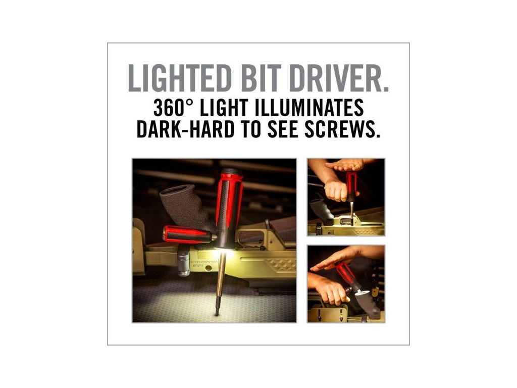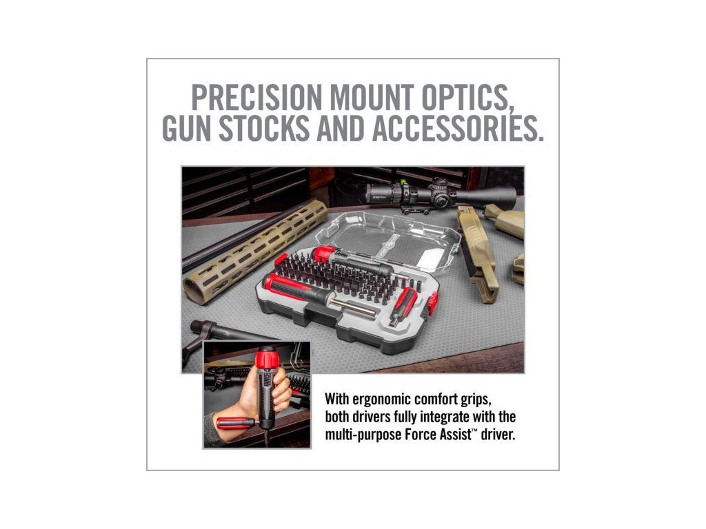 | Tato sada obsahuje 83 ks bitů a momentový klíč Smart-Torq. K tomu dva šroubováky (držáky bitů), které Vám pomohou při silných momentech díky páce. Tuto sadu využijí nejen puškaři, ale své uplatnění nalezne v kterékoli dílně, při jakékoli dílenské práci doma i v terénu. | |