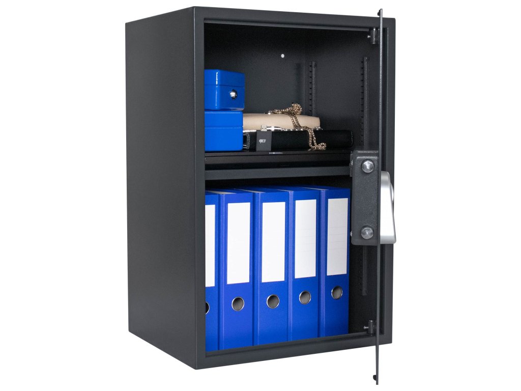 Hlavní výhody: Elektronický zámek Napájení 4 x 1,5V AA bateriemi (nejsou součástí balení) Jednoplášťový sejf 1 police vyjímatelní Nouzové mechanické otevírání Otvory pro ukotvení na spodní i zadní straně trezoru Nábytkový sejf z modelové řady Jupiter má elektronický zámek s napájením 4 x 1,5V bateriemi (nejsou součástí balení). Uvnitř sejfu najdou své místo malé cennosti, doklady, hodinky nebo menší šperky. Sejf lze ukotvit prostřednictvím připravených otvorů na spodní i zadní straně. Materiál pro ukotvení je součástí balení. Pro tuto schránku na zbraně je stanoveno, že při přechovávání krátkých zbraní do počtu 2 ks nebo do 500 ks nábojů plati prohlášení o shodě.