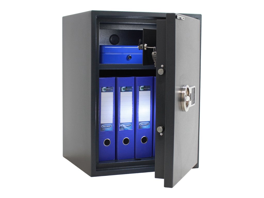 Hlavní výhody: Certifikovaný elektronický zámek Bezpečnostní třída S2 (ČSN EN 14450) Možnost úschovy zbraní a munice podle č. 190/2003 Sb Uzamykatelná vnitřní schránka s cylindrickým zámkem a 2 klíči Dvouplášťový nábytkový trezor Napájení 1 x 9V baterií (součástí balení) Tloušťka pláště dveří 70 mm Požární záhyb na dveřích Polička uvnitř Černý dvouplášťový trezor s certifikátem o bezpečnostní třídě S2 (ČSN EN 14450) a certifikovaným elektronickým zámkem. Vnitřek trezoru je poměrně variabilní a disponuje kromě posuvnou poličkou i samostatně uzamykatelnou schránkou v horní části trezoru. Napájení je řešeno prostřednictvím 9V baterie. V případě jejího vybití se vedle klávesnice nacházejí kontakty, ke kterým stačí přiložit náhradní baterii, zadat heslo a baterii uvnitř můžete vyměnit. V případě, že zadáte 3 krát po sobě nesprávné heslo, zámek se automaticky zablokuje na 5 minut. Rodinné šperky, dokumenty, šanony nebo jiné důležité cennosti tak budou bezpečně chráněny. Trezor můžete upevnit na podlahu nebo zeď pomocí přiloženého kotvícího materiálu. Kování zvyšuje celkovou vnější hloubku trezoru o 15 až 60 mm (v závislosti na konkrétním modelu).