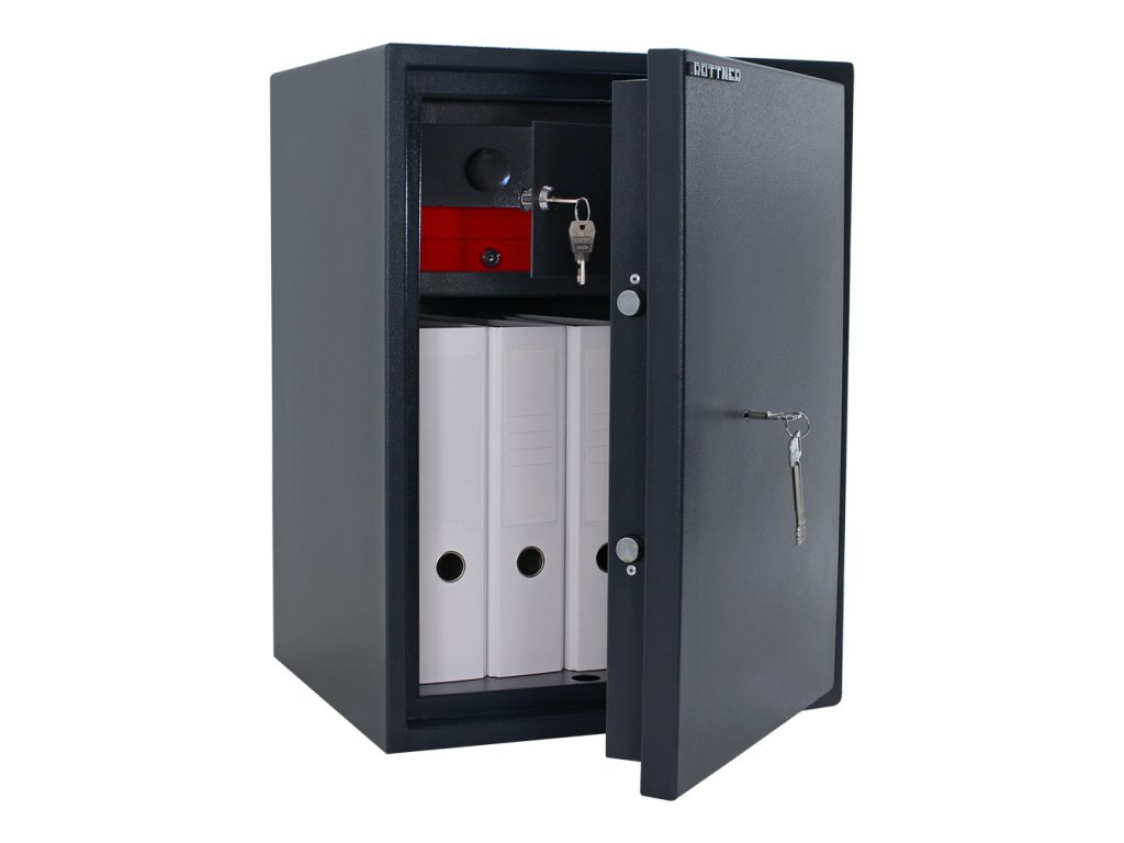 Hlavní výhody: Certifikovaný trezorový zámek se 2 klíči Bezpečnostní třída S2 (ČSN EN 14450) Možnost úschovy i zbraní a munice podle č. 190/2003 Sb Vnitřní schránka s cylindrickým zámkem a 2 klíči Dvouplášťový nábytkový trezor Tloušťka pláště dveří 70 mm Polička uvnitř Černý nábytkový trezor s bezpečným trezorový zámkem a 2 klíči. Trezor je držitelem bezpečnostní třídy S2 (ČSN EN 14450) a zároveň je možné v něm uschovat i zbraně a munici podle zákona č. 190/2003 Sb. z. Pro větší flexibilitu uvnitř trezoru najdete poličku a samostatně uzamykatelnou vnitřní schránku pro drobnější cennosti nebo pro munici. Dveře trezoru mají tloušťku 70 mm a zároveň mají požární záhyb pro případ menších požárů. V trezoru jsou připraveny otvory na spodní a zadní straně, jejichž prostřednictvím lze trezor ukotvit. Kotvící materiál je součástí dodávky.