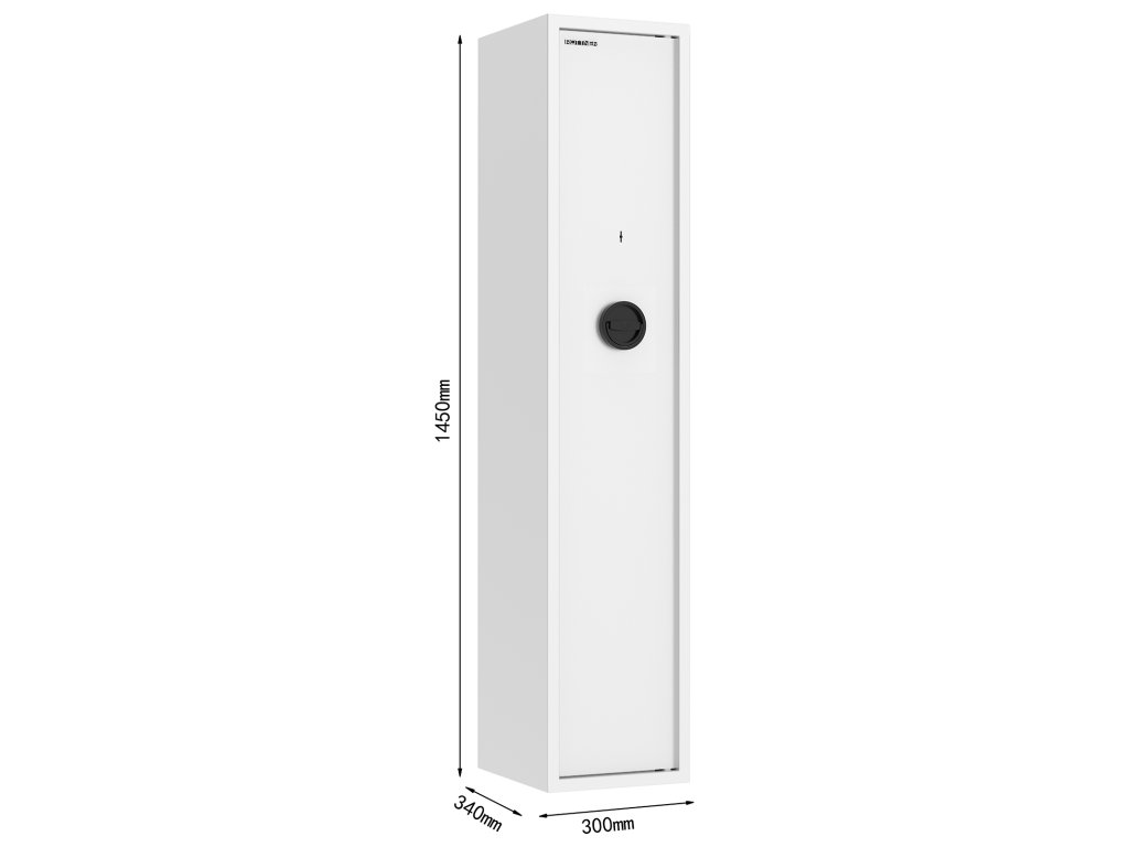 Hlavní výhody: Bezpečnostní třída S1 (ČSN EN 14450) Minimálně 15 RU (ČSN EN 1143-1) Certifikovaný trezorový zámek s 2 klíči Zámek chráněn proti odvrtání Možnost uložení až 5 dlouhých zbraní Malá samostatně uzamykatelná vnitřní schránka se 2 klíči Držáky pro uchycení nářadí na čištění zbraní Skříň na celkově 5 dlouhých zbraní nabízí bezpečnostní dveře, na kterých vnitřní straně najdete držák na nářadí, které používáte při čištění zbraní. Zároveň je v horní části umístěna samostatně uzamykatelná skříňka s cylindrickým zámkem a 2 klíči, kterou můžete využít například na uskladnění munice. Skříň splňuje bezpečnostní třídu S1 a také požadavek na Min 15 RU a vyhovuje požadavkům na úschovu zbraní a střeliva, které jsou stanoveny zákonem č.190 / 2003 Sb Skříň má otvory k ukotvení na spodní i zadní straně a ukotvit ji můžete na podlahu nebo na stěnu. Potřebný kotvící materiál je součástí balení. Splňuje podmínky dle zákona č. 119/2002 Sb. o zbraních a střelivu.