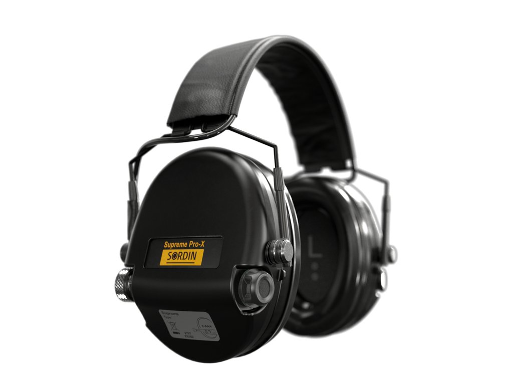 Sordin střelecká sluchátka Supreme Pro-X Slim SFA - č. mušle, č. kůže, PVC náušníky, volitelný útlum