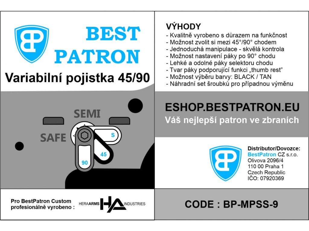 - Odjišťování dlohým chodem o 90 stupňů je poměrně nepohodlné a v případě kratších prstů se Vám bude dost hodit, že u této pojistky nastavíte chod na 45 stupňů.