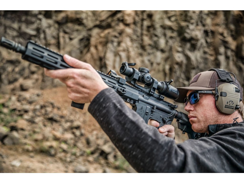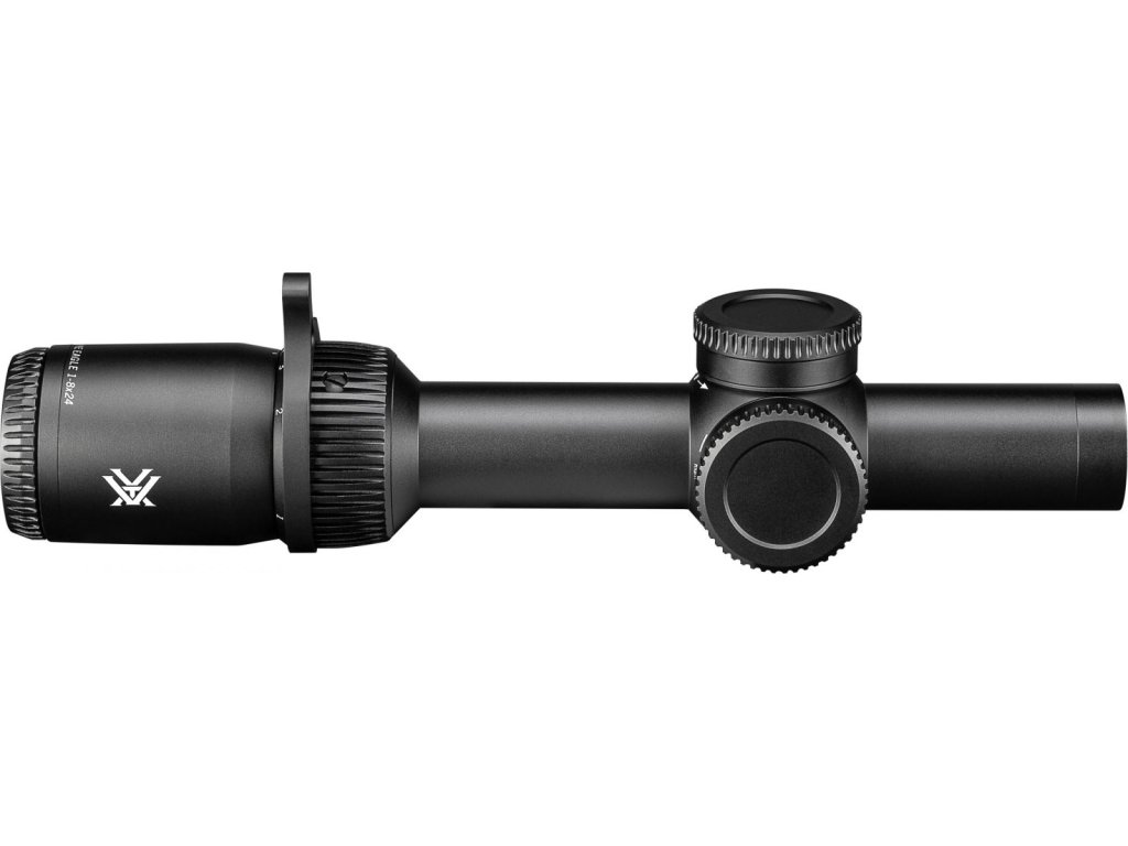 | Nový Strike Eagle 1-8x24 v první fokální rovině Vám umožní odečet vzdáleností při jakémkoli zoomu. S tímto puškohledem tak budete dominovat ve stísněných prostorech a zároveň zvýšíte úroveň střelby na delší vzdálenost. Nový kříž EBR-8 nabízí použití jako s red-dot kolimátory při 1x zoomu, stejně tak kvalitní kompenzaci vzdálenosti od cíle až do 600 yardů (549 m). Pro různé světelné podmínky si můžete vybrat z devíti standardních úrovní přísvitu a dvou pro noční vize. To vše naleznete v optickém systému s 30 mm tubusem a skrytými komínky, díky čemuž s nemusíte bát o nechtěné přenastavení nulové polohy. Navíc v balení naleznete zoomovací páku pro snadné a rychlé změny přiblížení. Toto je puškohled, který se narodil pro cinkání popperů ;) | |||||||||||||||||||||||||||||